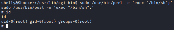 Shocker reminded me of my first days in cybersecurity. It is vulnerable to Shellshock which was my first ever vulnerability that I’ve exploited. Root part is as simple as knowing how to spawn a shell using Perl.