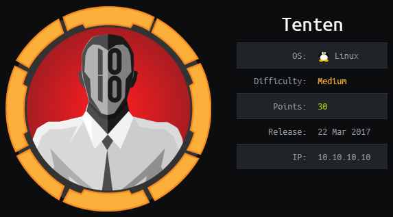 Tenten starts with very basic enumeration, but it very quickly becomes an interesting box. It requires knowledge of how to use and edit exploits and combines it with thinking outside the box. After a very fun user I was a bit dissapointed with simplicity of escalation to root, but it was still an enjoyable experience.