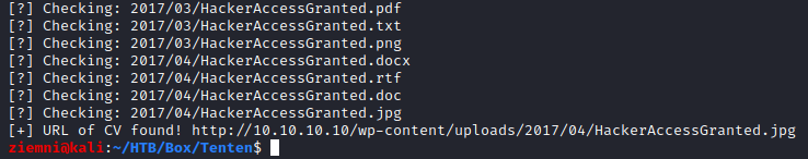 Now, let’s edit the exploit slightly, so it has more relevant year range to machine’s release date. We can also add some more extension in case the CV was uploaded as a picture or a text file.