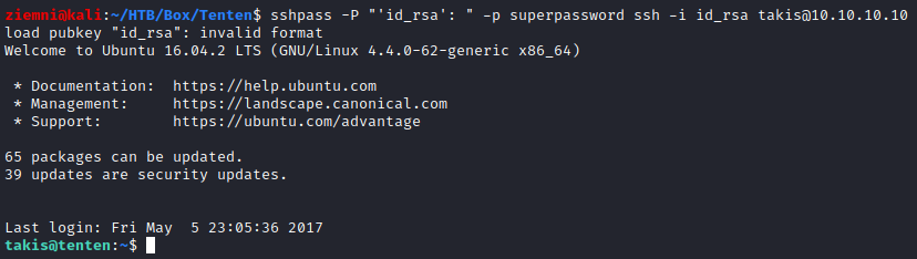 Now we can log in to ssh using the id_rsa key as takis user. Why takis? The only post on the WordPress page was created by takis.